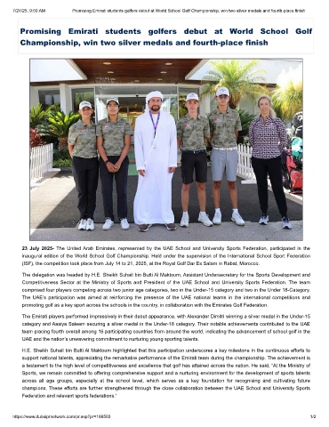 7/24/25, 9:50 AM Promising Emirati students golfers debut at World School Golf Championship, win two silver medals and fourth-place finish