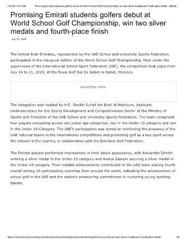 7/24/25, 9:51 AM Promising Emirati students golfers debut at World School Golf Championship, win two silver medals and fourth-place finish - Middle…