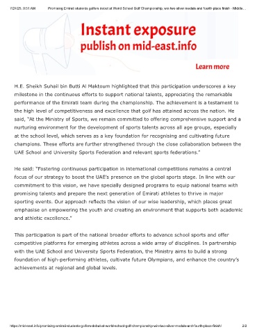 7/24/25, 9:51 AM Promising Emirati students golfers debut at World School Golf Championship, win two silver medals and fourth-place finish - Middle…