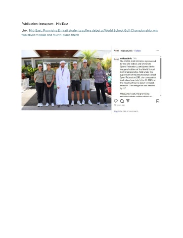 Publication: Instagram – Mid East Link: Mid-East: Promising Emirati students golfers debut at World School Golf Championship, win two silver medals and fourth-place finish