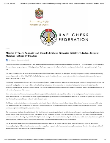 7/23/25, 9:17 AM Ministry of Sports applauds UAE Chess Federation’s pioneering initiative to include resident members in Board of Directors | Web R…