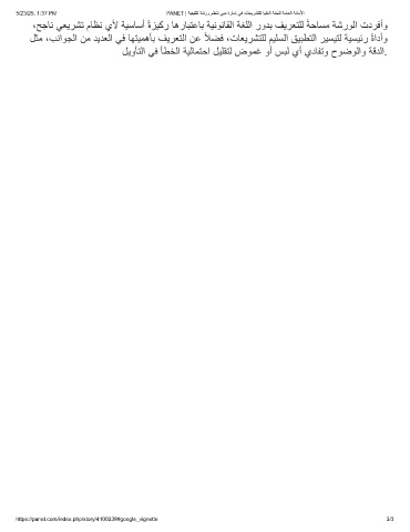 ،ﺢﺟﺎﻧ ﻲﻌﯾرﺷﺗ مﺎظﻧ يﻷ ﺔﯾﺳﺎﺳأ ًةزﯾﻛر ﺎھرﺎﺑﺗﻋﺎﺑ ﺔﯾﻧوﻧﺎﻘﻟا ﺔﻐﻠﻟا رودﺑ فﯾرﻌﺗﻠﻟ ﺔﺣﺎﺳﻣ ﺔﺷروﻟا تدرﻓأو