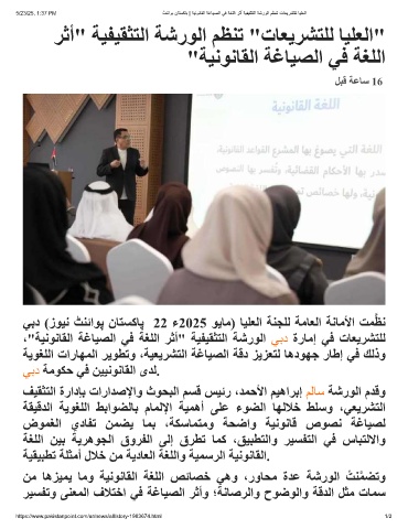 ،"ﺔﯿﻧﻮﻧﺎﻘﻟا ﺔﻏﺎﯿﺼﻟا ﻲﻓ ﺔﻐﻠﻟا ﺮﺛأ" ﺔﯿﻔﯿﻘﺜﺘﻟا ﺔﺷرﻮﻟا ﻲﺑد ةرﺎﻣإ ﻲﻓ تﺎﻌﯾﺮﺸﺘﻠﻟ