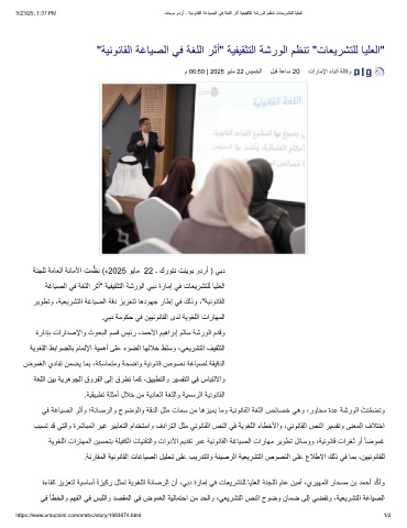 "ﺔﯾﻧوﻧﺎﻘﻟا ﺔﻏﺎﯾﺻﻟا ﻲﻓ ﺔﻐﻠﻟا رﺛأ" ﺔﯾﻔﯾﻘﺛﺗﻟا ﺔﺷروﻟا مظﻧﺗ "تﺎﻌﯾرﺷﺗﻠﻟ ﺎﯾﻠﻌﻟا"