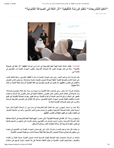 5/23/25, 1:35 PM "7 تارﺎﻣﻻا | رادﻟا رﺎﺑﺧأ | "ﺔﯾﻧوﻧﺎﻘﻟا ﺔﻏﺎﯾﺻﻟا ﻲﻓ ﺔﻐﻠﻟا رﺛأ" ﺔﯾﻔﯾﻘﺛﺗﻟا ﺔﺷروﻟا مظﻧﺗ "تﺎﻌﯾرﺷﺗﻠﻟ ﺎﯾﻠﻌﻟا