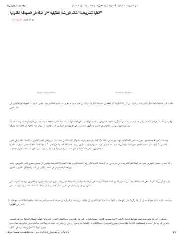 5/23/25, 1:35 PM مﻼﺳﻟا ﺔﻟﺎﺳر – ”ﺔﯾﻧوﻧﺎﻘﻟا ﺔﻏﺎﯾﺻﻟا ﻲﻓ ﺔﻐﻠﻟا رﺛأ“ ﺔﯾﻔﯾﻘﺛﺗﻟا ﺔﺷروﻟا مظﻧﺗ ”تﺎﻌﯾرﺷﺗﻠﻟ ﺎﯾﻠﻌﻟا