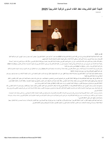 ﺎﯾﻠﻌﻟا ﺔﻧﺟﻠﻟا مﺎﻋ نﯾﻣأ ،يرﯾﮭﻣﻟا رﺎﺣﺳﻣ نﺑ دﯾﻌﺳ دﻣﺣأ روﺿﺣﺑ ،"ﻲﻌﯾرﺷﺗﻟا لﺎﺛﺗﻣﻻا زﯾزﻌﺗ وﺣﻧ ً ﺎﻌﻣ" رﺎﻌﺷ تﺣﺗ 2025 ﺔﻧﺳﻟ ﺔﯾﻌﯾرﺷﺗﻟا ﺔﺑﺎﻗرﻠﻟ يوﻧﺳﻟا ءﺎﻘﻠﻟا ﻲﺑد ةرﺎﻣإ ﻲﻓ تﺎﻌﯾرﺷﺗﻠﻟ ﺎﯾﻠﻌﻟا ﺔﻧﺟﻠﻟ ﺔﻣﺎﻌﻟا ﺔﻧﺎﻣﻷا تدﻘﻋ