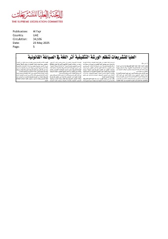 Publication: Al Fajr Country: UAE Circulation: 34,596 Date: 23 May 2025 Page: 5
