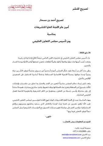 ﺲﻠﺠﻤﻟا لوﺪﺑ ﺔﻴﻌﻳﺮﺸﺘﻟا تﺎﺴﺳﺆﻤﻟا ﻊﻣ ﻖﻴﺴﻨﺘﻟا تارﺎﺴﻣ ﺮﻳﻮﻄﺗ ﺔﻠﺻاﻮﻣ ى�ﻋ مﺰﻌﻟا ﻦﻳﺪﻛﺆﻣ ،ﺔﻴﻓاﺮﺸﺘﺳﻻا