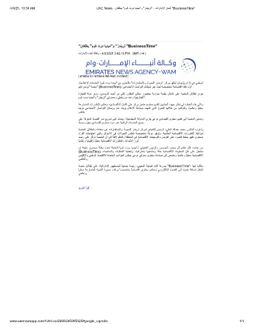 4/4/25, 10:34 AM UAE News - نﺎﻘﻠطﯾ "موﻛ تود ﺎﯾدﯾﻣ"و "زدﻧﯾرﺗ" - تارﺎﻣﻹا رﺎﺑﺧأ "BusinessTime"
