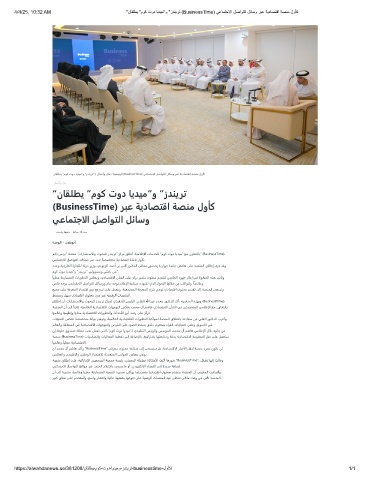 ﺔﺼﻨﻣ قالﻃإ ﻰﻠﻋ ،ﺔﻴﺗارﺎﻣإلا ﻦﻴﻴﻔﺤﺼﻟا ﺔﻴﻌﻤﺟ ﺔﺴﻴﺋر ،ﻲﻨﻴﻌﻤﻟا ﺔﻠﻴﻀﻓ ةذﺎﺘﺳألا ﺖﻨﺛأ ﺎﻫروﺪﺑ “BusinessTime”، ﻞﻜﺸﺗ ﺎﻬﻧإ ﺖﻟﺎﻗو