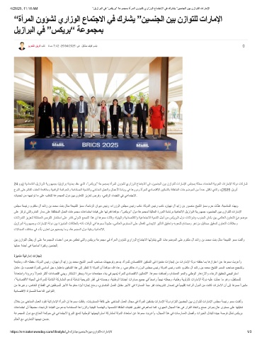 24 موﯾ) ﺔﯾدﺎﺣﺗﻻا لﯾزارﺑﻟا ﺔﯾروﮭﻣﺟﺑ ﺎﯾﻠﯾزارﺑ ﺔﻧﯾدﻣﺑ دﻘﻋ يذﻟا ،”سﻛﯾرﺑ“ ﺔﻋوﻣﺟﻣﺑ ةأرﻣﻟا نوؤﺷﻟ يرازوﻟا عﺎﻣﺗﺟﻻا ﻲﻓ ،نﯾﺳﻧﺟﻟا نﯾﺑ نزاوﺗﻠﻟ تارﺎﻣﻹا سﻠﺟﻣﺑ ﺔﻠﺛﻣﻣ ،ةدﺣﺗﻣﻟا ﺔﯾﺑرﻌﻟا تارﺎﻣﻹا ﺔﻟود تﻛرﺎﺷ
