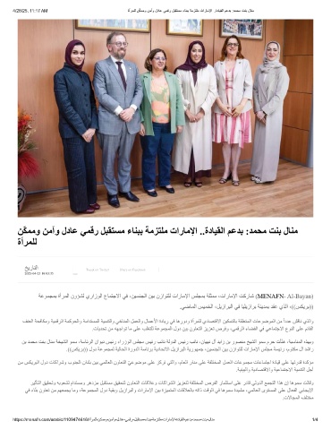 4/28/25, 11:17 AM ةأرﻣﻠﻟ نّﻛﻣﻣو نﻣآو لدﺎﻋ ﻲﻣﻗر لﺑﻘﺗﺳﻣ ءﺎﻧﺑﺑ ﺔﻣزﺗﻠﻣ تارﺎﻣﻹا ..ةدﺎﯾﻘﻟا مﻋدﺑ :دﻣﺣﻣ تﻧﺑ لﺎﻧﻣ