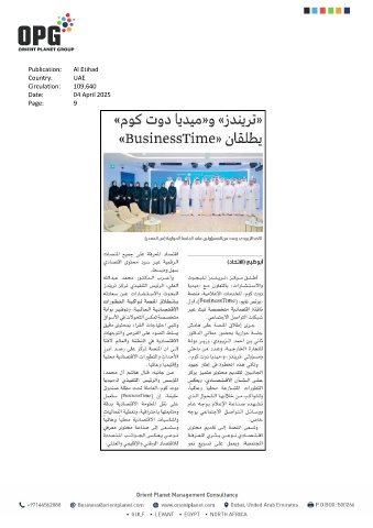 Publication: Al Etihad Country: UAE Circulation: 109,640 Date: 04 April 2025 Page: 9