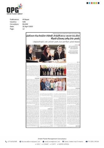 Publication: Al Bayan Country: UAE Circulation: 80,000 Date: 26 April 2025 Page: 12
