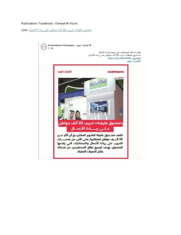 Publication: Facebook – Emarat Al Youm Link: « لامعلأا ةداير ىلع نطاوم فلأ 35 بيردت :»ةفيلخ قودنص