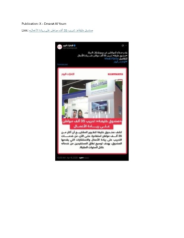 Publication: X – Emarat Al Youm Link: « لامعلأا ةداير ىلع نطاوم فلأ 35 بيردت :»ةفيلخ قودنص