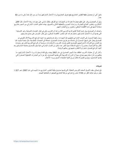 60 نود ام ىلإو ًاماع 21 نس نم ًاءدب نييتاراملإا لامعلأا داورل عيراشملا ليومت حيتي عيراشملا ريوطتل ةفيلخ قودنص نأ ىلإ ًاريشم