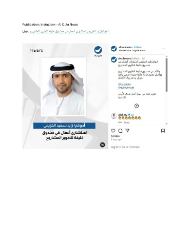 Publication: Instagram – Al Oula News Link: عيراشملا ريوطتل ةفيلخ قودنص يف لامعأ يراشتسا يميزخلا دياز/مكوخأ
