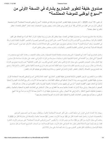 ﮫﻔﯾﺿﺗﺳﺗ يذﻟا "ﺔﻣﺷﺗﺣﻣﻟا ﺔﺿوﻣﻠﻟ ﻲﺑظوﺑأ عوﺑﺳأ" تﺎﯾﻟﺎﻌﻓ ﻲﻓ ﮫﺗﻛرﺎﺷﻣ ﻊﯾرﺎﺷﻣﻟا رﯾوطﺗﻟ ﺔﻔﯾﻠﺧ قودﻧﺻ نﻠﻋأ – 2025 ،لﯾرﺑأ 15 ،ﻲﺑظ وﺑأ