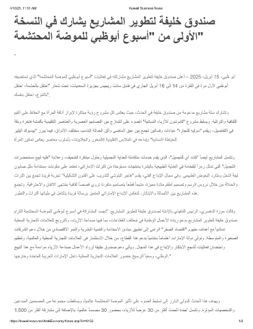 ﮫﻔﯾﺿﺗﺳﺗ يذﻟا "ﺔﻣﺷﺗﺣﻣﻟا ﺔﺿوﻣﻠﻟ ﻲﺑظوﺑأ عوﺑﺳأ" تﺎﯾﻟﺎﻌﻓ ﻲﻓ ﮫﺗﻛرﺎﺷﻣ ﻊﯾرﺎﺷﻣﻟا رﯾوطﺗﻟ ﺔﻔﯾﻠﺧ قودﻧﺻ نﻠﻋأ – 2025 ،لﯾرﺑأ 15 ،ﻲﺑظ وﺑأ