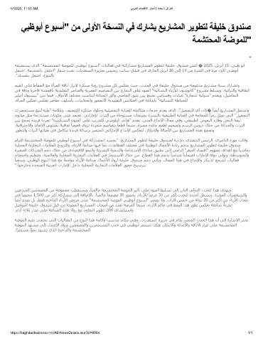ﻪﻔﯿﻀﺘﺴﺗ يﺬﻟا "ﺔﻤﺸﺘﺤﻤﻟا ﺔﺿﻮﻤﻠﻟ ﻲﺒظﻮﺑأ عﻮﺒﺳأ" تﺎﯿﻟﺎﻌﻓ ﻲﻓ ﻪﺘﻛرﺎﺸﻣ ﻊﻳرﺎﺸﻤﻟا ﺮﻳﻮﻄﺘﻟ ﺔﻔﯿﻠﺧ قوﺪﻨﺻ ﻦﻠﻋأ � 2025 ،ﻞﻳﺮﺑأ 15 ،ﻲﺒظ ﻮﺑأ