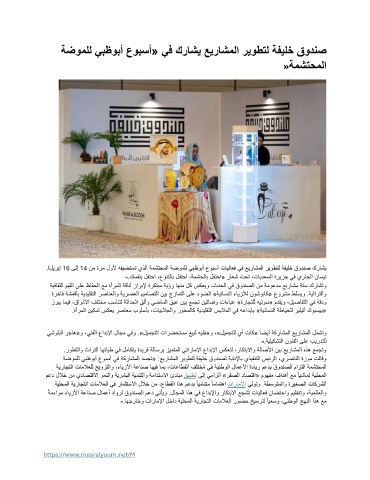 ةيفاقثلا ميقلا ىلع ظافحلا عم ةأرملا ةقانأ زاربلإ ةركتبم ةيؤر اهنم لك سكعيو ،ثدحلا يف قودنصلا نم ةموعدم عيراشم ةتس كراشتو