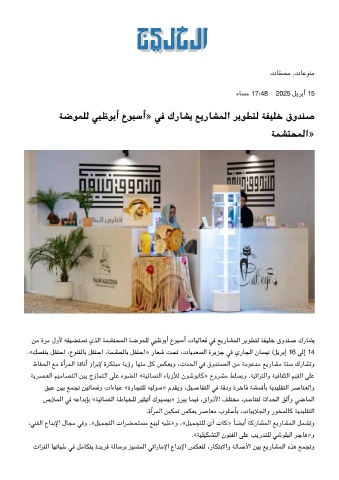 ﺔﺿﻮﻤﻠﻟ ﺒﻇﻮﺑأ عﻮﺒﺳأ» ﻓ كرﺎﺸﻳ ﻊﻳرﺎﺸﻤﻟا ﺮﻳﻮﻄﺘﻟ ﺔﻔﻴﻠﺧ قوﺪﻨﺻ