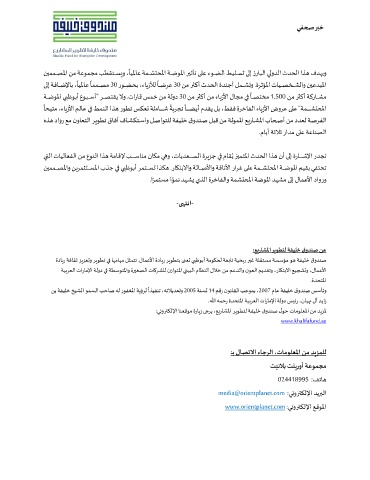 ﺔـــــﺿﻮﳌا ي�ﻇﻮﺑأ عﻮﺒـــــﺳأ" ﺮـــــﺼﺘﻘﻳ ﻻ و .تارﺎﻗ ﺲﻤﺧ ﻦﻣ ﺔﻟود 30 ﻦﻣ ��ﻛأ ﻦﻣ ءﺎ�زﻷا لﺎﺠﻣ �� ﺎـــــﺼﺘﺨﻣ 1,500 ﻦﻣ ��ﻛأ ﺔﻛرﺎـــــﺸﻣ