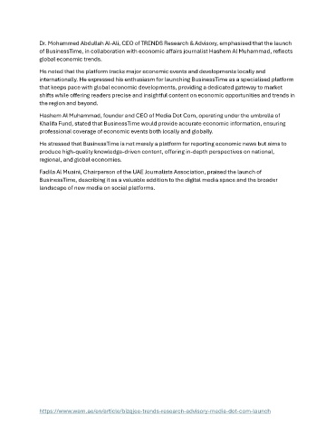 Khalifa Fund, stated that BusinessTime would provide accurate economic information, ensuring