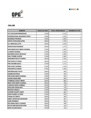 WEBSITE VALUE (IN AED) TOTAL MEDIA REACH NUMBER OF HITS