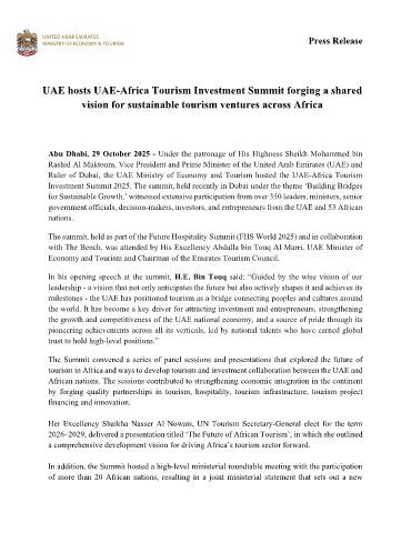UAE hosts UAE-Africa Tourism Investment Summit forging a shared