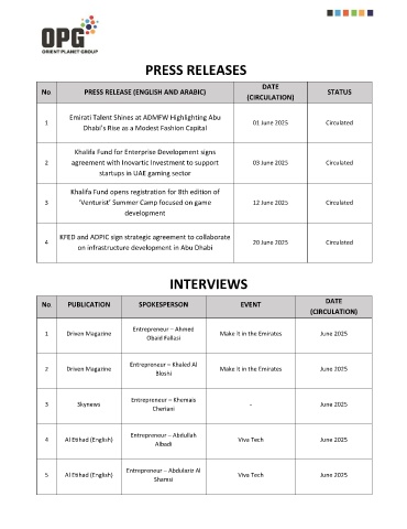 No. PRESS RELEASE (ENGLISH AND ARABIC) DATE STATUS