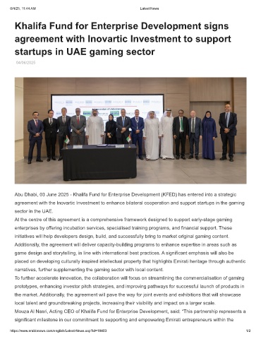 Abu Dhabi, 03 June 2025 - Khalifa Fund for Enterprise Development (KFED) has entered into a strategic