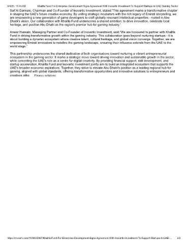 6/4/25, 11:44 AM Khalifa Fund For Enterprise Development Signs Agreement With Inovartic Investment To Support Startups In UAE Gaming Sector