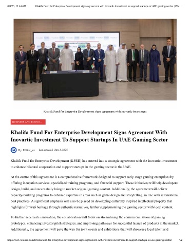 6/4/25, 11:44 AM Khalifa Fund for Enterprise Development signs agreement with Inovartic Investment to support startups in UAE gaming sector | We…
