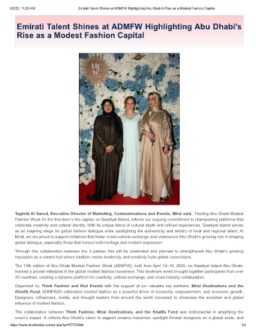 6/2/25, 11:25 AM Emirati Talent Shines at ADMFW Highlighting Abu Dhabi's Rise as a Modest Fashion Capital