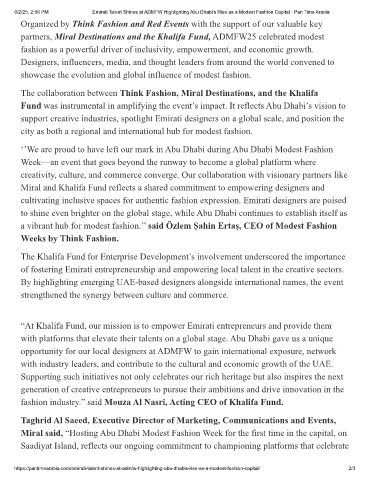 6/2/25, 2:06 PM Emirati Talent Shines at ADMFW Highlighting Abu Dhabi’s Rise as a Modest Fashion Capital - Pan Time Arabia