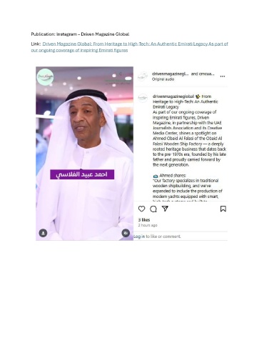 Publication: Instagram – Driven Magazine Global Link: Driven Magazine Global: From Heritage to High-Tech: An Authentic Emirati Legacy As part of our ongoing coverage of inspiring Emirati figures