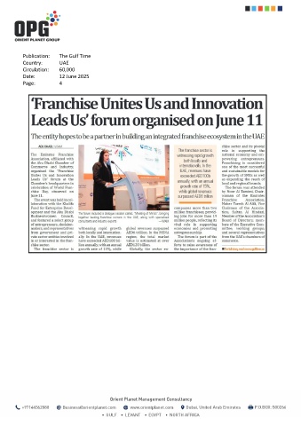 Publication: The Gulf Time Country: UAE Circulation: 60,000 Date: 12 June 2025 Page: 4