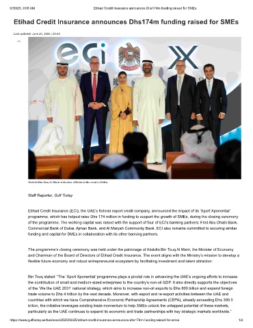 https://www.gulftoday.ae/business/2025/06/25/etihad-credit-insurance-announces-dhs174m-funding-raised-for-smes 1/2