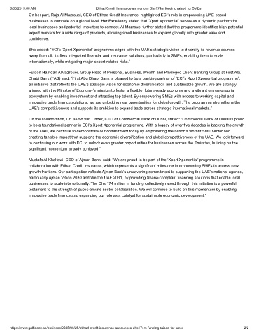 https://www.gulftoday.ae/business/2025/06/25/etihad-credit-insurance-announces-dhs174m-funding-raised-for-smes 2/2
