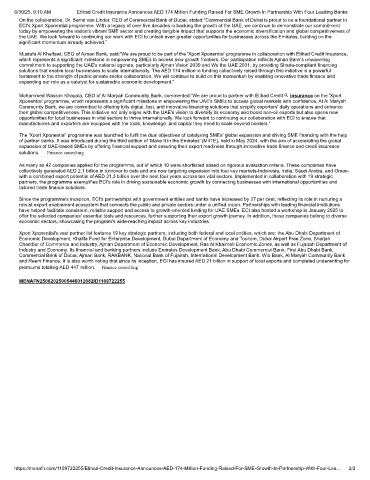 6/30/25, 9:10 AM Etihad Credit Insurance Announces AED 174 Million Funding Raised For SME Growth In Partnership With Four Leading Banks