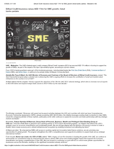 https://english.mubasher.info/news/4464034/Etihad-Credit-Insurance-raises-AED-174m-for-SME-growth-listed-banks-partake/ 1/2