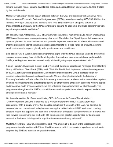6/30/25, 9:11 AM Etihad Credit Insurance Announces AED 174 Million Funding For SME Growth In Partnership With Four Leading Banks - UrduPoint