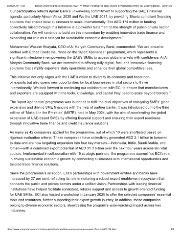 6/30/25, 9:11 AM Etihad Credit Insurance Announces AED 174 Million Funding For SME Growth In Partnership With Four Leading Banks - UrduPoint