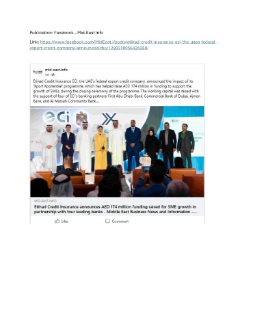 Publication: Facebook – Mid-East Info Link: https://www.facebook.com/MidEast.i/posts/etihad-credit-insurance-eci-the-uaes-federal- export-credit-company-announced-the/1290318056428288/