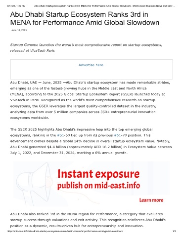 6/17/25, 1:32 PM Abu Dhabi Startup Ecosystem Ranks 3rd in MENA for Performance Amid Global Slowdown - Middle East Business News and Infor…