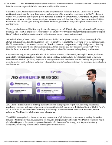 6/17/25, 1:33 PM Abu Dhabi's Startup Ecosystem Ranked 3rd in MENA Despite Global Slowdown - UPPERNEWS: UAE news, Dubai news, technolo…