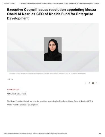 6/13/25, 2:55 PM Executive Council issues resolution appointing Mouza Obaid Al Nasri as CEO of Khalifa Fund for Enterprise Development - Aletiha…